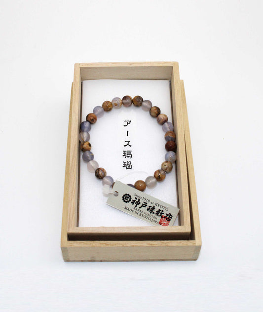 Multicolor Ryukyu Fluorite Prayer Bead Bracelet Natural Japanese Gemstone 7mm