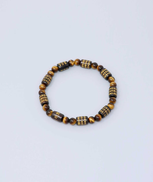 Striped Ebony Heart Sutra Prayer Bead Bracelet with Tiger’s Eye Accent