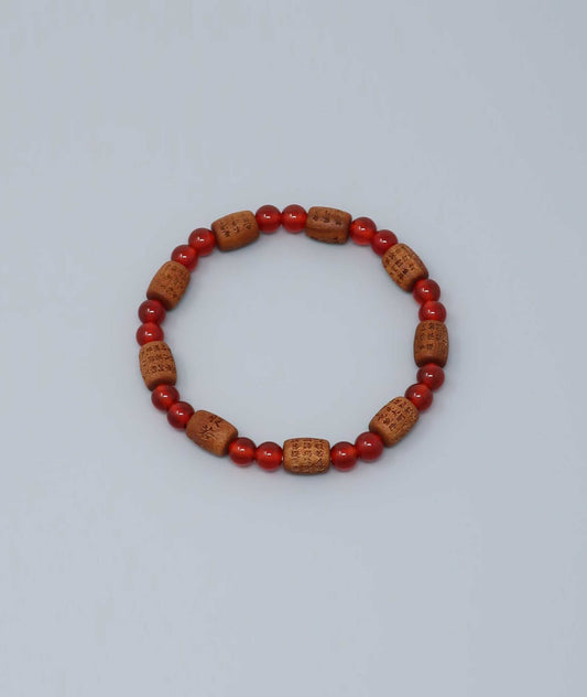 Sandalwood Prayer Bead Bracelet Hand-Engraved Heart Sutra with Agate Accent